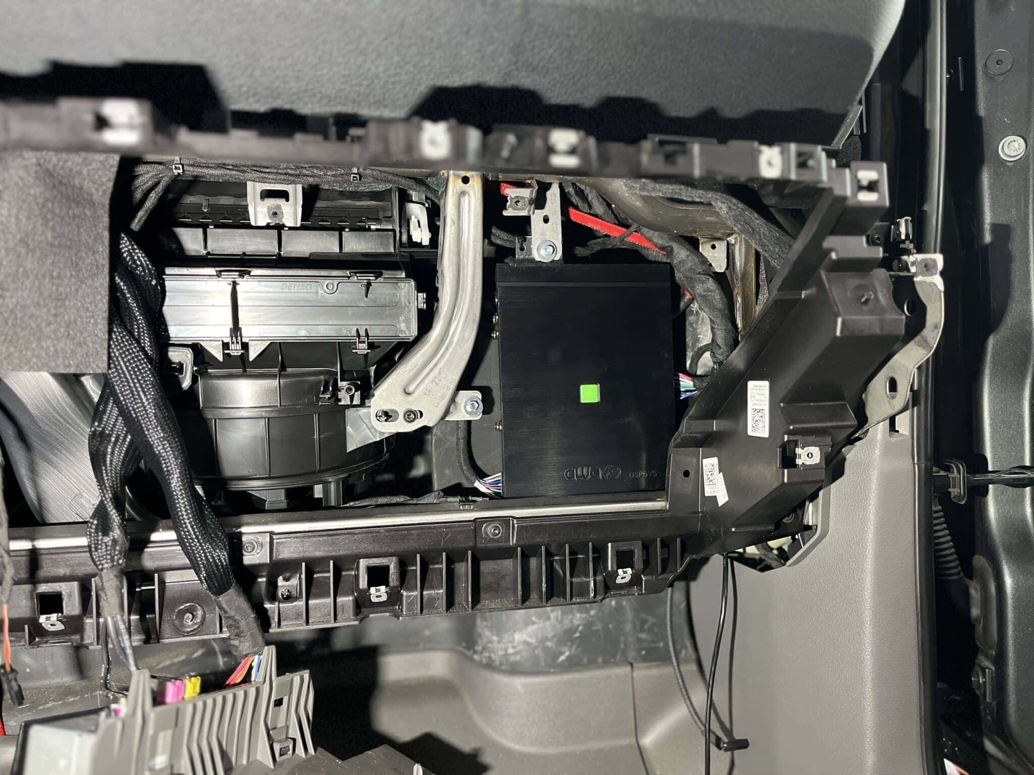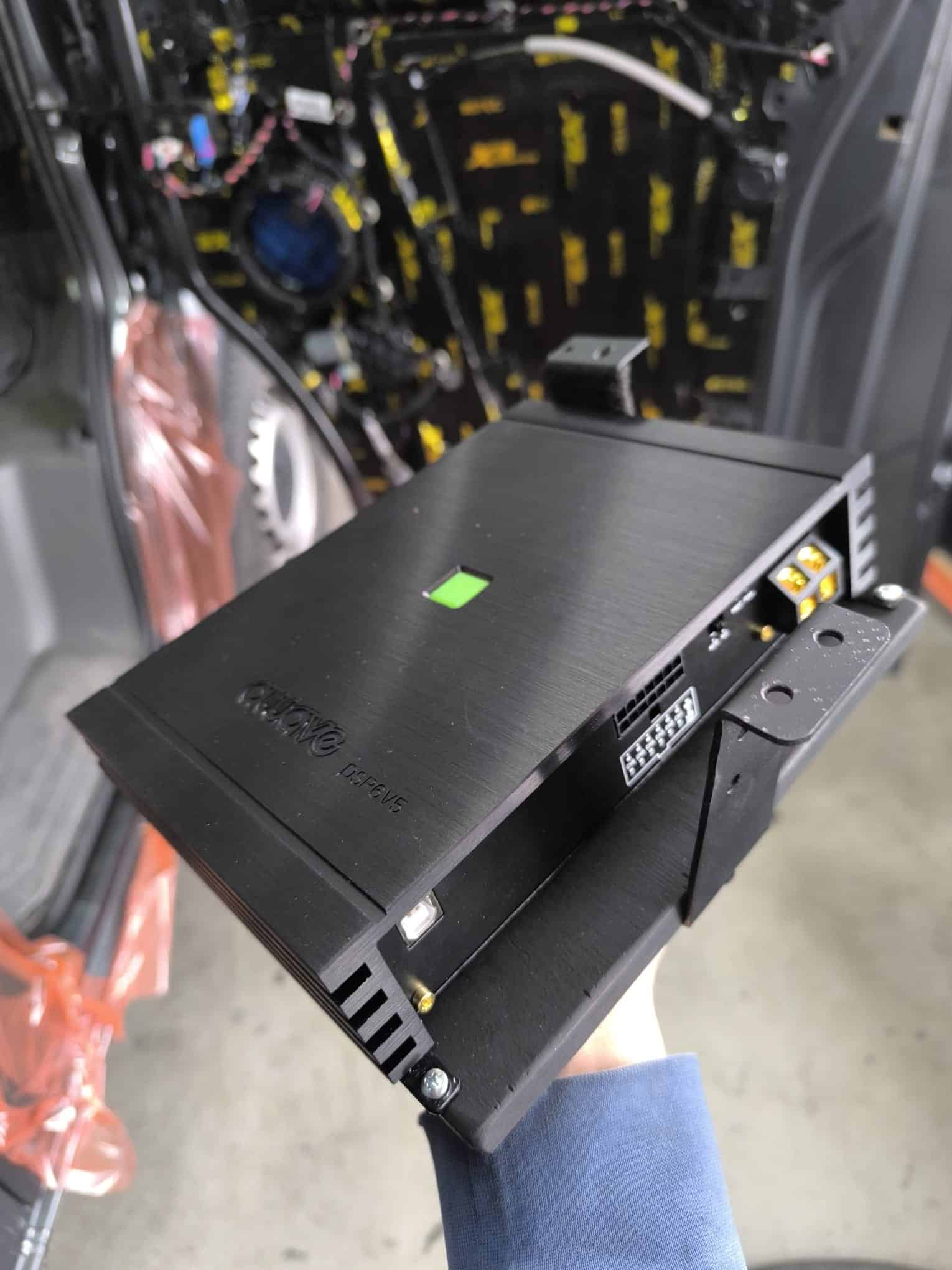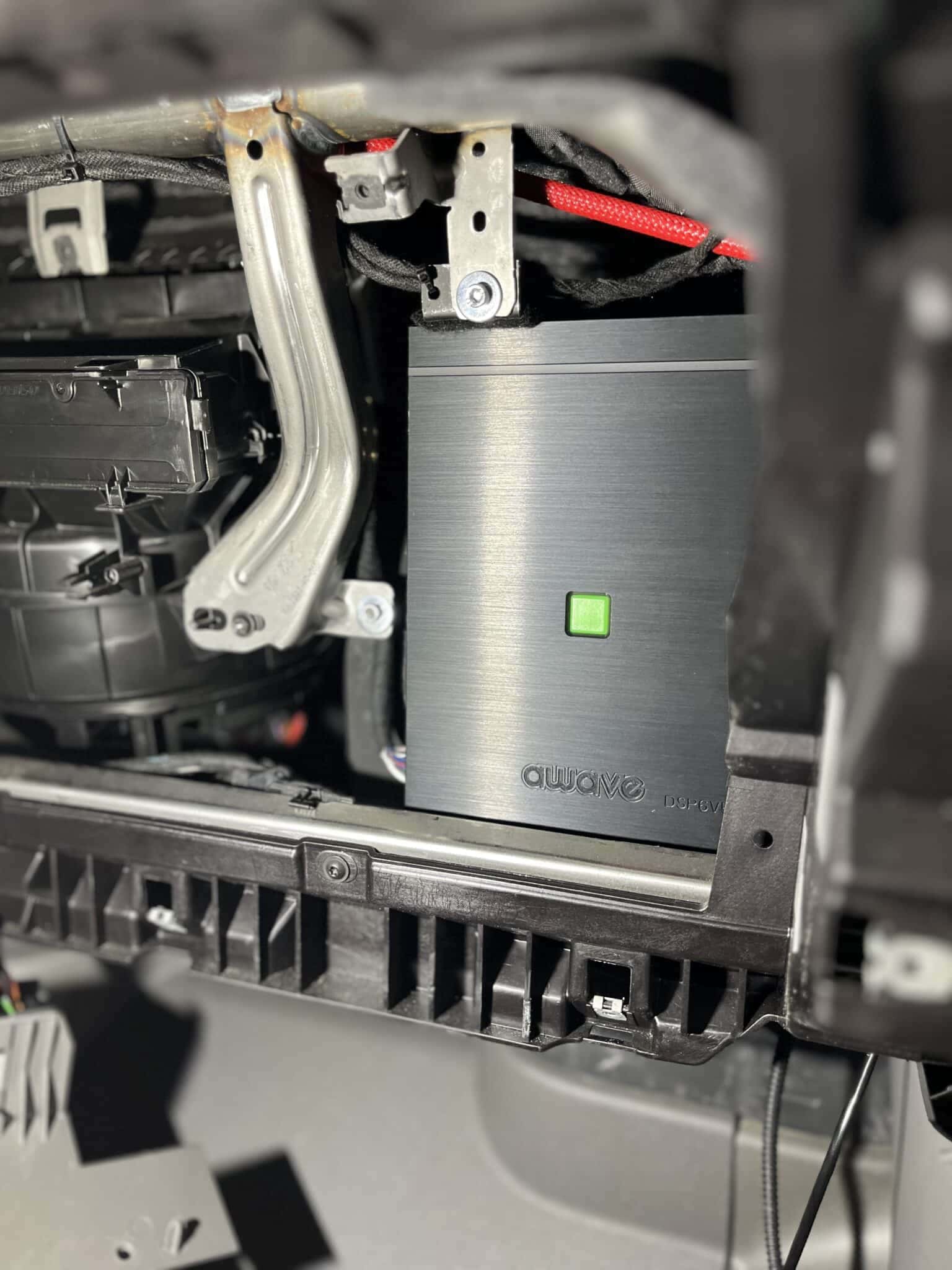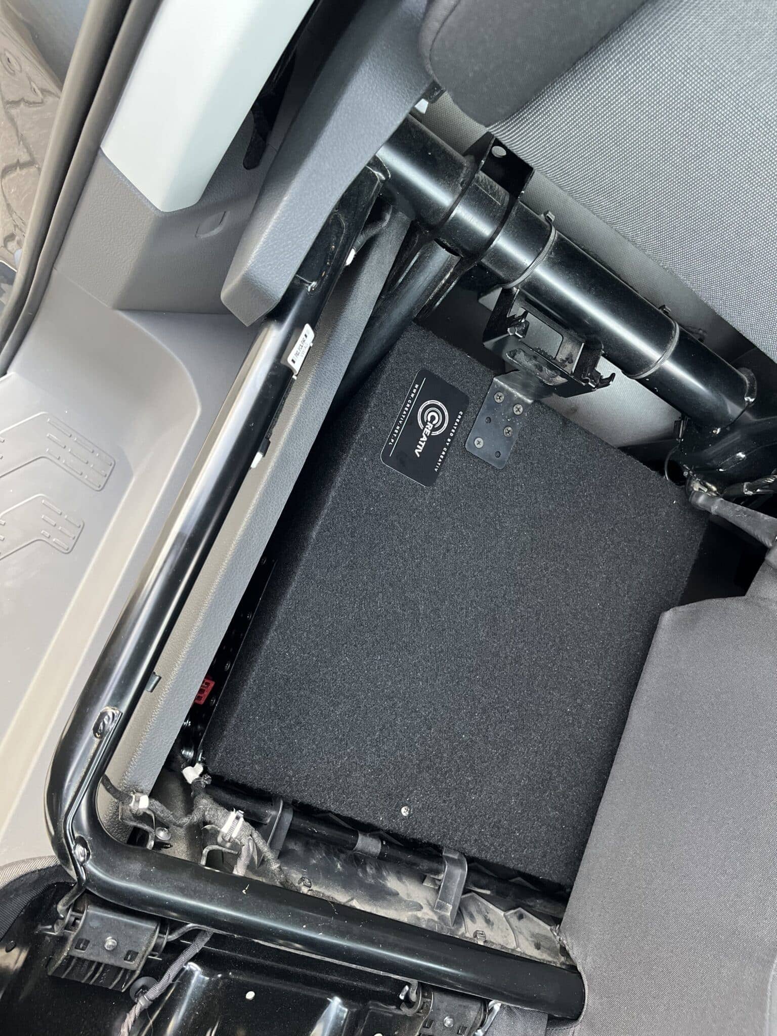• Subwoofer Arc Audio 8d2 w dedykowanej skrzyni pod siedzeniem pasażera – mocne i głębokie basy